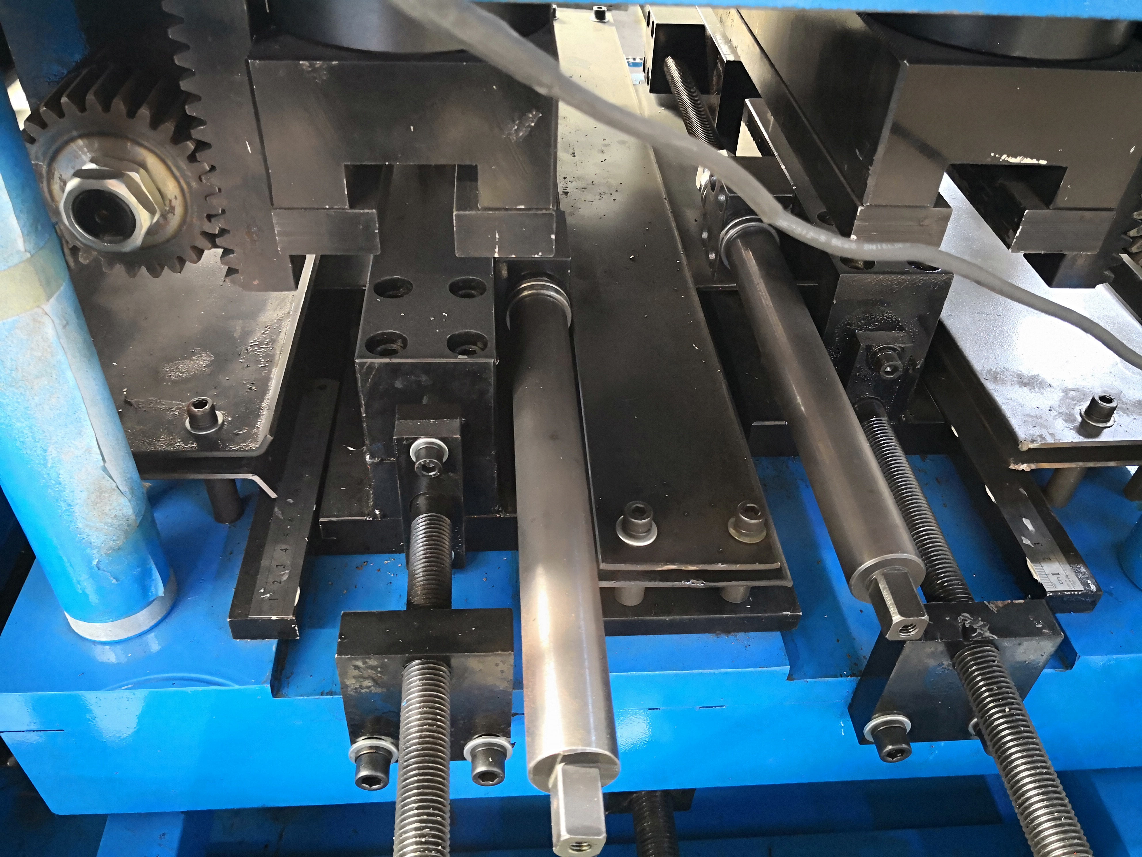 La base deLa estación de punzonado está en un tornillo de plomo adecuado para facilitar la salida de las estaciones de perforación para obtener un cambio de golpe y morir, yAgregue la escala de medición para un fácil ajuste