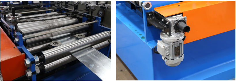 Conducción del motor, transmisión de cadena de engranajes, 15 grupos de rodillos a forma y 5 rodillos (2 rodillos superiores y 3 rodillos bajos) para enderezar;