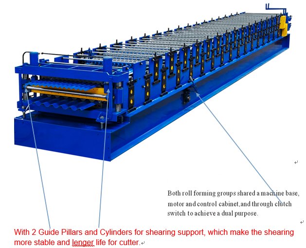 Ambos grupos de formación de rollos compartieron una base de máquinas, motor y gabinete de control, y a través del interruptor de embrague para lograr un doble propósito.