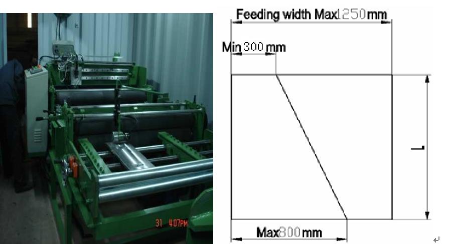 0.5mm-0.8mm, Material de acero Tensión: G300MPA Ancho de la bobina de corte: MAX.800mm Ancho de la bobina de corte: Min.300mm Velocidad de corte: Aproximadamente 13m / min