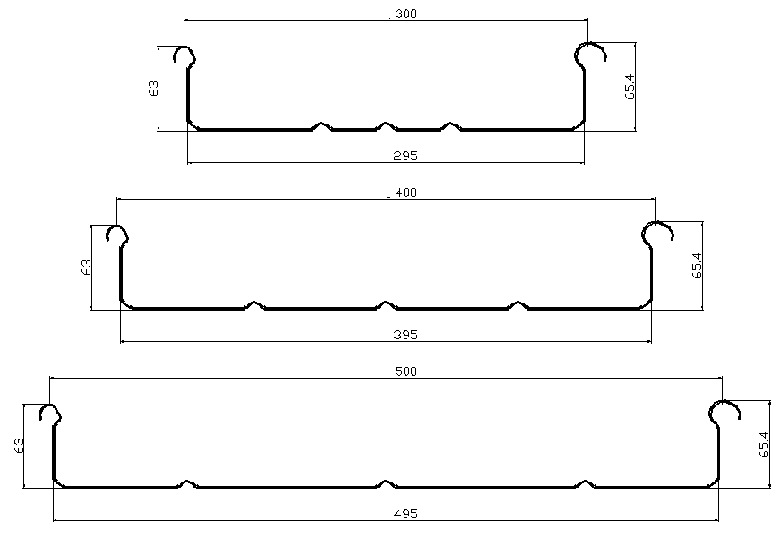 La máquina de formación de rollo de YX65-400 (ajustable) puede formar 3 hojas de tipo (ancho efectivo de 300 mm, 400 mm, 500 mm)