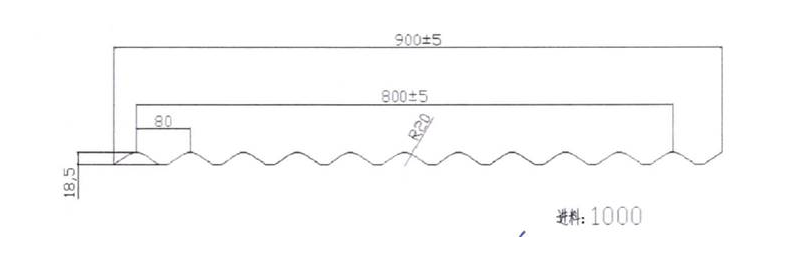 Espesor del material: 0.35-0.45mm la altura de la ondaTolerancia: ±0.5mm