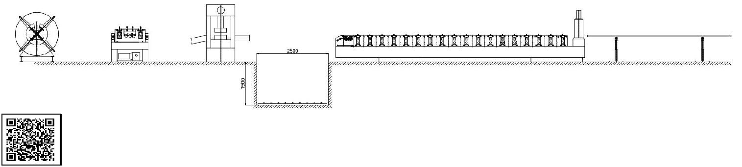Decoiler hidráulico de 6 toneladas → Dispositivo de nivelación → Dispositivo de perforación hidráulica → Dispositivo de alimentación → Máquina principal del sistema → Corte posterior hidráulico → Rack de salida